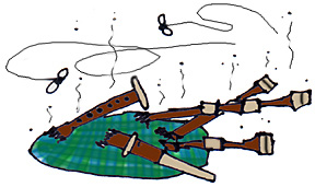I'm sure there's lots of books, tutorials and web pages out there on how to become a good bagpiper. So I'm going to offer some advice on how to become a rotten piper. Go it alone. They say it takes "seven years and seven generations" to become a true piper. Well, the heck with that. An instructor will correct all your mistakes that you aren't aware of. We don't want that. And bad habits will sneak in over time so if you're forced into getting a teacher, at least only go for a short time . . . definitely no more than is required to learn all the basic embellishments. Grip the practice chanter tightly. You don't want to be able to lift your fingers quickly, so hold your fingers down as hard as you can. Walk around with your PC, don't cheat and support it on something so you can have a very light grip. If you are lucky you can get carpal tunnel syndrome and be really messed up. Play embellishments really quickly and move your fingers as little as possible. Play as fast as you can, we're not looking for perfection here. Overlap those notes and if you barely lift your fingers, the note may become entirely inaudible later on. That'd be wonderful! Practice once a week or even better once a month. The last thing you want to do is train your fingers. Spend all your time on the computer reading piping stuff instead! And if you're stuck having a teacher, he'll understand if you don't practice, just tell him you had more important things to do. Teachers like to review things over and over and over. Heck, they wouldn't be teaching if they didn't like to feel superior . . . you wouldn't want to hurt his feelings, right? Practice as short as possible. Bah, stamina is for good pipers! Heck, why tire yourself out? No more than a few minutes, tops. If you have to practice for a long time, make sure to practice beyond the point where you can play well, then you can really train those neurons with bad form! Skip those boring exercises. If you were dumb enough to get an instructor, he'd tell you to practice doubling scales, grip scales, taorluath scales, scales, scales, scales! Boring! You took up pipes to look cool, not play boring scales. Might as well sniff rotten fish. Going to lessons? Drink up! Everyone knows that you play better when you can relax, right? What's more relaxing than a few beers or some shots? Maybe something mind-altering you bought on the corner from that dude out on parole! If you are relaxed enough, everything they teach you will go in one ear and out the other—perfect! But I told you not to get an instructor anyway, remember? Forget the practice chanter, jump right on the big pipes! The PC is for wimps that can't hack it on the real pipes. World level pipers keep that PC in their pipe cases just for show. Get a "gut buster" reed. One great way to lose concentration is to play a super hard chanter reed. You'll be turning purple, huffing and puffing, and as an extra bonus you'll probably tighten up your whole body—including your fingers! And definitely don't cork up any of your drones to make playing a new reed easier. That's for sissies. Curl those fingers! Bah, instructors talk about keeping your fingers pretty straight, like levers. Is that natural? Do you type with your knuckles? No! Play with your fingertips. Don't focus when you practice. There's a saying "practice doesn't make perfect, it makes permanent!" Well, if you are going to risk wrecking your naturally bad form by practicing, at least don't listen to what your gracenotes and embellishments sound like. That way, if you are lucky, you can ingrain some rotten technique during all those practice hours. Don't use a metronome. All human beings are born with a absolutely perfect internal clock that doesn't speed up or slow down, what do you need one of those tick-tock things for? Save your money. And heck, if you're off the beat, who's going to notice? Don't play in front of a mirror or videotape yourself. Just play naturally. If you look in front of a mirror you may see that your "E" finger is raising too high when you lift it and may want to correct it. Fight the urge. Never perform for an audience. The more freaked out you get when your finally play in front of a group, the better! If you have to play in front of a group, do it early on for the general public—definitely not your family and don't wait until some instructor messes up your natural form. It's not how you sound anyway, it's how you look. Just buy one of those tall fuzzy hats, they'll think you're cool. Don't record yourself. Like an instructor, you hear lots of things to correct when you listen objectively. Forget that! Get your pipes on eBay for cheap! What a rip off! Why pay $1,000 for a set of pipes, when you can buy a set of "genuine great highland bagpipes" for $100 on eBay? By now, those Pakistani pipemakers know their stuff! So what if it's made from mystery wood, African Blackwood is overrated! Wood all sounds the same the way you are playing it anyway! Don't tune your drones. We're not shooting for that crystal pool of beautifully tuned sound. If you're lucky you can turn off a bunch of listeners. Maybe they'll hate the bagpipes forever! Now we're talkin'! Start with really hard tunes. There's nothing like starting at the top! Only school children play easy tunes. Pick tunes with crunluath a machs and superluaths back-to-back. Man, that'll sound like trash.