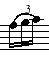 When the repeat numbers are immediately following a bar, the [ can be eliminated, .i.e. |[1 becomes |1 . (On the other hand, I like to be explicit, so I tend to leave the brackets for clarity.) If the begining of the repeat starts in the middle of a bar somewhere, you need the [ . If you aren't getting quite what you want, experiment with closing the repeat with a ] . A bit more advanced stuff. Text Annotation, adding text to the staves. Sometimes it can be helpful to add comments to the tune somewhere in the staves themselves. The text annotation code is placed anywhere in the body of the abc notation, but the text must appear within leading and trailing double-quote marks ("). Inside the initial double-quote character, text annotations have to start with one of five characters: ^ _ < > @ . Just an example: {Gdc}d3/2c/2"^Don't cut this C note!" | {g}f2 {gf}ge Text annotation could also be handy for creating the embellishment abbreviations seen used in piobaireachd such as for the crunluath and taorluath variations. Comment lines. If you wish to make a comment in an abc file which will not show up in the final score, know that anything to the right a percentage sign until the end of that line is ignored. So you can start a line with % or insert a % where you want to start comments. Or if you wish to comment out the tempo line in the header, just throw a % in the front of that line. Just don't start a line with two percent symbols as these indicate a line with special formatting instructions. Slur. To indicate a slur, that is, a gradual slide to another note, place the notes between parens, such as : (de) . This will add an arc connecting the two notes. Triplets, Quadruplets, etc. The official way to render a triplet is a paren ( , followed by a 3 then the three notes in question, such as: (3efg the above will render three notes tied together with a "3" to indicate a triplet. Depending on the software, this "3" may end up below the notes. Sometimes to get the indicator above the notes, you have to cheat a bit, by using text annotation and slurs together, such as: (f"3"ga) which would appear as: