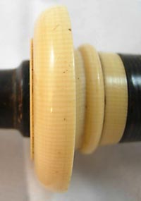 The first, and often most difficult, step is to try to identify the maker of your pipes. Knowing the specific make of a set of bagpipes, almost without fail, increases their value—as well as easing the whole value determination process. Sometimes the maker's name is stamped somewhere on the drones, such as under the drone cords.