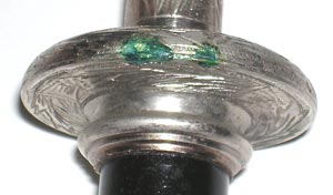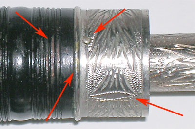 On a side note, you want to be careful when transporting authentic ivory mounted pipes across international borders. Doing so requires special permits documenting the age of the ivory to prove that the ivory preceded the bans on the sale of elephant ivory, or that the ivory is derived from a mammoth or other creature. "How do I know if I have real silver?" Nickel is most common for the ferrules of a bagpipe. Though you may also find stainless steel, brass, gold-plating, silver, aluminum, and other metals. If the bagpipes originated in the UK, any silver will be hallmarked with a series of small stamps into the metal which indicate the silver content, the office which performed the assay and the year of inspection. Silver plate also can receive hallmarking, so you have to be a bit careful, though sterling silver is more common than silver plating for Western pipes. If you are unsure, consider taking your set down to your local jeweler to have him or her give the fittings a wizened eye, this can include a scratch test if necessary.