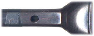 Another alternative to you carving a chanter is to have someone else do it for you. You can just send it back to the manufacturer for adjustment. Some piperssome through piping retailersoffer chanter adjustment as a service. Personally, I'd want to make sure that the piper is a professional grade piperif he or she is a world class piper, all the better. What to carve.The mostly likely candidates for carving are high-A and B, though others may require adjustment. If you are considering carving low-A, be positive it's the problem since this will alter the fundamental "tonic note" of the chanter. Changing the low-A will also slightly affect B, E, F, high-G and high-A in decreasing amounts as you go up the scale—such a change would be infinitesimal with regard to its effect by the time you reach high-A. Low-A modification is sometimes necessary, but best done by very experienced hands. Conversely, the higher the changed note, the less effect on the rest of the chanter and less risk. How to carve.Pick your target(s). First, draw yourself a diagram of which note (or notes) that are giving you problems. It's not all the hard to get distracted by the process and forget which hole you are supposed to be working on—much like the stories of dentists pulling the wrong tooth! Mark the flattest note and begin with that note. If you wish, you can even mark the chanter itself with a watersoluable pencil such as a "China Marker." Tools. Pipers use a variety of tools for opening holes. The most common are precise instruments such as small rat-tail files and deburring tools. A few brave and very experienced pipers use motorized tools with rotating sanding bits (such as a Dremel). The high-A hole shown in the photo at the top of this page was treated with a Dremel by a Gold Medalist. Such motorized tools are recommended only for those that have a preconceived idea as the amount of wood removal required as these tools can take off a lot of material in a very short time. It's easy to destroy a nice chanter with any motorized tool, that's why most people don't use them. If you would like some practice undercutting, you can drill some holes in a piece of PVC pipe to simulate chanter holes and use it as a "guinea pig." Carving a plastic chanter has a different feel than wood, but the concept is the same. Testing. Understandably, it's not easy to reverse, so you'll want to carve slowly and sparingly and test often against a tenor drone (some prefer the middle tenor). It's best to not to try to carve your chanter when you don't have a lot of time for adjusting and testing. Make sure you blow very steady when testing. A manometer could be helpful to monitor your blowing pressure. Playing short bits of tunes can be helpful in determining whether you have successfully corrected a note or not. If you get to the point where you can't tell, I'd recommend stopping and perhaps doing additional work another day. Be patient! Do it. Start by fully inspecting the hole you are going to carve. Check for cracks, pits or any other irregularities and adjust your approach accordingly. (Figure 1.)
