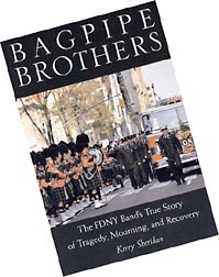 Kerry Sheridan - Bagpipe Brothers (July 2004) I finally read this one in January/February 2005 and I have a credit (along with a bunch of other people) in the front of the book. Ms. Sheridan's book tells the story of the pipe band of the New York City Fire Department in the wake of the "9-11" tradgedy. It's received some very good reviews, which are accurate in my humble opinion. It really gives you a sense of what it was like. In September 2005, Ms. Sheridan contacted me for help correcting bagpiping related errors for the paperback edition. I provided a few dozen suggestions—I don't know which were integrated. I haven't seen the second release, but I've been told that a few inaccuracies still exist. Published by Rutgers University Press |