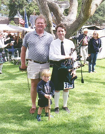 Andrew's First Competition - July 24, 1999On July 24th, 1999, I entered my first piping competition in at the Monterey Highland Games at the Monterey County Fairgrounds. I competed at 9:42 in the Grade IV Slow March category then again officially at 10:50 (later actually) in the Grade IV Piobaireachd (pronounced "Pee-brock") category. My wife Kristen's folks drove up from San Diego to visit and to see the competition. We were all down to Monterey, including my children Nicholas and Charlotte, by about 9:15 a.m., at least 15 minutes later than I wanted, but we made it.