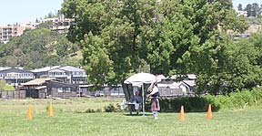The weather was very sunny and warm. The temperatures climbed into the 80s as the day went on, good thing I remember sunscreen this morning! After double-checking the schedule and determining the locations of the platforms, I found a spot to warm up in the parking lot equidistant between the occupied tennis courts, the occupied children's playground and the occupied competition field area. (It's a well-used school grounds on the weekends!) I warmed up, carefully retaped my High-A and E which sounded out of whack. The instrument was now humming along. I had a quick banana to ward off hunger, parked my pipe case amidst a bunch of others near the registration tent then wandered about with my pipes until time to warm up again for the first event. I ran into Tom Jenkins, who was scheduled to play the same events, though a few pipers before me in the timeline. Tom has a quick wit and always has good stories to tell. I also got to meet Mike Lindelsee, a new student of Jay's from the San Jose Area who will be competing for the first time at Campbell next month. He was getting a handle on how competition works and getting a gauge on where he stands relative to other pipers. It's a good practice to scope things out. The Slow March. My first event was the Slow March scheduled at 9:56 at Platform 2 which was marked out with orange cones on the grass along one edge of the grassy field. The judge was Charlie Rosenberger who had judged me in Pleasanton a couple years ago. I told him I'd be playing "Heaken My Love." He replied, "I haven't hear that one in a while." I retuned for a minute, faced the table, held an E, tried to get focused and then launched into the tune. About three bars into the tune, I zoned out and went to the wrong note. Thoughts: "Oh, crud! What did I do? How did I do that? I don't know how to weave back into the right place! Ack! Should I just break down? No, I'm not going to do that. Just start again at the beginning of the tune." And that's what I did. Once I started over, I played it just fine with only minor issues. My Slow March WUSPBA Adjudication Sheet: Contest Site: Mt. Tamalpais, Date: 5-21-05, Name: Andrew Lenz, Tone and Tuning Execution Expression Tempos Breaks Is tune selection appropriate? Points Awarded: 68 Judge's Signature: <Charlie Rosenberger> In a bit of deja vu, after I'd played, Charlie asked me who my instructor was and if I'd been taught "back East." (Obviously, he judges a lot and wouldn't remember asking me this very question a couple years earlier.) He doesn't see the alternate High-A (F finger down) that often. I told him Jay Salter and rattled off a couple of Jay's instructors, including Jimmy McColl. I was really disappointed with myself. 'Out of the running' already with the first event. Secretly I was harboring dreams of grandure that I might win the Grade IV aggregate medal. Kip Nead did it last year at Mt. Tam, so I figured I had a decent shot. Phooey. When I got the score sheet later on, and saw the comment on the ending (B to A with a Low-G gracing) I knew this had been a problem area—surprisingly perhaps—for me this past week. That should be easy to fix in the future with a just some brief work. I found some solace chatting with Tom and Mike before the next event, the 2/4.