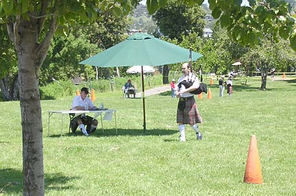 Andrew's Competition #17 - May 21, 2005Today is Friday, May 13, 2005. Boy, it feels peculiar typing this. It's been a long seven months. The Mount Tamalpais Solo Piping and Drumming Competition is a week from tomorrow. This is the second year of these new games, I missed it last year as I was in Colorado at the time. So where am I piping-wise? "Okay." I was off the pipes for about six weeks starting in mid-January due to a piping related abdominal injury—I'm figuring it was a hyperextended/strained diaphragm—which was extremely painful for a few days. All the tests (blood, "fluid," Ultrasound) all came back negative, meaning it was muscular or nervous system. But that seems all behind me now, it's been four months. I'm going to compete with the same tunes as last year, I'm pretty happy with them, though I was considering learning a new 2/4 march, but I didn't get to it as I had hoped. My slow march (Hearken My Love) feels very good, my piobaireachd (The Battle of Auldearn) is very good—as long as I can keep focused on where I am in the tune! Only my 2/4 (The Siege of Delhi) really isn't where I want it to be, but we'll see what I can tweak in the last week leading up to the games. Fingers crossed! Sunday, May 15, 2005. I had a lesson with Jay Salter, my instructor, yesterday for the second time in six months or so. He broke down the 2/4 march for me and gave me some things to correct for better expression. Today, I listened to a professional recording of the piobaireachd on a CD I have and realized I've been coming off the cadence E a bit too soon. I'll need to adjust that a bit. Practice chanter work only today. The slow march feels nice. The 2/4 has improved a bit, still needs work though. Wednesday, May 18, 2005. Had a quick 30-45 minute lesson with Jay today—talk about a ramp up in lesson time! We ran through the slow march and the piobaireachd very briefly and spent most of the time on the 2/4, my weakest event. He feels I've made progress this week. I still need to hold the dotted C notes longer (as I'm pushing the tempo a bit in those spots) and get the grips at beginning of the lines a bit crisper. In the ballpark though. My left "E" ring finger has been bothering me a little bit—broke it last year—so I've been avoiding E intensive music, such as practicing toarluath and crunluath variations on my piobaireachd, which I don't need for a Grade IV competition anyway. Friday, May 20, 2005. I got in a couple of brief practices in before and after work today. I have to admit, I feel a bit nervous. Not because of my playing, but just the thought of competition. I just have to remind myself that it's all for fun, which it is. Competition for me is a way to grow—push the envelope as it were. It'd be easy to just quit competing, play in the band and for family. Cake walk. But no. I'm not content to just be content with the status quo. Being nervous isn't comfortable, but it's a means to an end, the path to being a better piper. Competing can only help me improve. COMPETION DAY! If there was any doubt that I'm in this for self-improvement and not for medals, today was good proof. Read on . . . I woke up early and one of my first thoughts was: "Why do I do this to myself?" Considering I usually have to be out the door to work by 9:00 a.m., being out the door by 7:00 a.m. for fun can be a challenge! I got additional directions from a friend of ours last night, who recommended taking 280 up to the Golden Gate Bridge, all the while I was visualizing 680 in my head once she mentioned "a lot of lanes." For those of you familiar with Northern California, you are now thinking "uh, oh." Yep. In my groggy state I proceeded to get myself on the northeast side of the San Francisco Bay near Benicia instead of southwest side approaching the Golden Gate! Yipe! One of these days, I'm going to end up in Nevada. I quick call to my wife Kristen and her asking around, got me across a bridge or two and back down to Larkspur for the competition with about an hour to spare before my first event. Whew! I explained my mishap at the registration table and a fellow, who introduced himself as Paul—while writing this I figured out he was Paul Forrest, who was the e-mail contact for the games—was quick to point out: "Didn't you do that before? A couple years ago?" I laughed and had to nod my head. (Seems like these writings often tend to proceed me!)