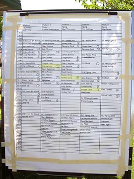 The Piobaireachd. Piobaireachd was my third and final even scheduled at 10:52 at Platform 4 which was marked out with yellow caution tape amid some trees. (It was close to a soccer match in progress, so I think the organizers were worried about someone wandering into the competition area.) The judge was Fritz Hoffman. Tom had to go act as statistician for his son's baseball game and had to scratch for the piobaireachd event. Walt Innes, on staff at Stanford's linear accelerator, had to scratch due to a power outage messing up his work schedule. That left only four out of the six pipers signed up. I spent more time tuning up and warming up for my last event. The soccer game wrapped up and one of the players made a point to angrily yell over, "Do you really think someone wants to listen to that noise for hours and hours?" I just smiled, amused and replied, "Hours and hours!" Still smiling, I turned to Mike, who was keeping me company, "I think that's the first negative comment I've ever had from someone." I walked over to the table, Fritz said "It's nice to see you again." For the life of me, I couldn't—and can't—remember where I met Fritz before, but I just smiled. (I don't always remember the judges from earlier competitions, I used to be pretty oblivious to them due to the circumstances!) I introduced "The Battle of Auldearn" then tuned up. I thought I had the drones pretty close. I started into the tune, stayed on track and finished up pretty clean. I was pretty happy with it, I played it at least 95% of what I am capable. I was called over to the table, and Fritz asked me how I thought I did. Now, this can be seen as a trick question! Like a police officer asking you how fast you were going when he pulled you over. So, I know I didn't play like an piper at the Glenfiddich Invitational, but I hesitantly told him "Pretty good." "You know . . ." Uh, oh. When a judge starts a sentence with "you know," you're in trouble. ". . . you weren't holding your E's as long as you should have for your Hiyoen." Here I ran into a little trouble. Jay Salter, my instructor, has modified the traditional canntaireachd vocable system to more closely match how it's actually played. For learning tunes correctly, this is great. When communicating with another piper using canntaireachd, it can complicate things. But, Fritz had his practice chanter handy—this, I have to admit, I like in a judge—and he demonstrated exactly what he was talking about and that made it clear. When I finished, I felt I'd played well enough to easily win the event, especially with only four pipers, but now I wasn't so confident. My Piobaireachd WUSPBA Adjudication Sheet: Contest Site: Mt. Tamalpais, Date: 5-21-05, Name: Andrew Lenz, Tone and Tuning Execution Expression Tempos Breaks Is tune selection appropriate? [From main comment area:] Points Awarded: 83 Judge's Signature: <Fritz Hoffman> I wandered about talking with Mike for a while, then some of the other competitors. Slowly, event by event, the results went up. First was the Slow March. I'd taken 5th! I was surprised and happy. A while later the 2/4 results where up, I'd placed 3rd! Tom Jenkins had taken 1st place. He had left me his cell phone number for me, and when I called, he couldn't believe it. "You better not be kidding me! I don't know your sense of humor, if I go around telling people I won and . . . " But with a little persistence I convinced him.